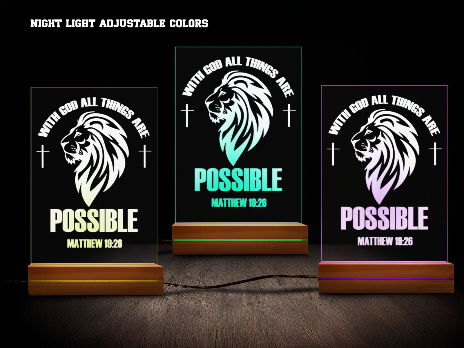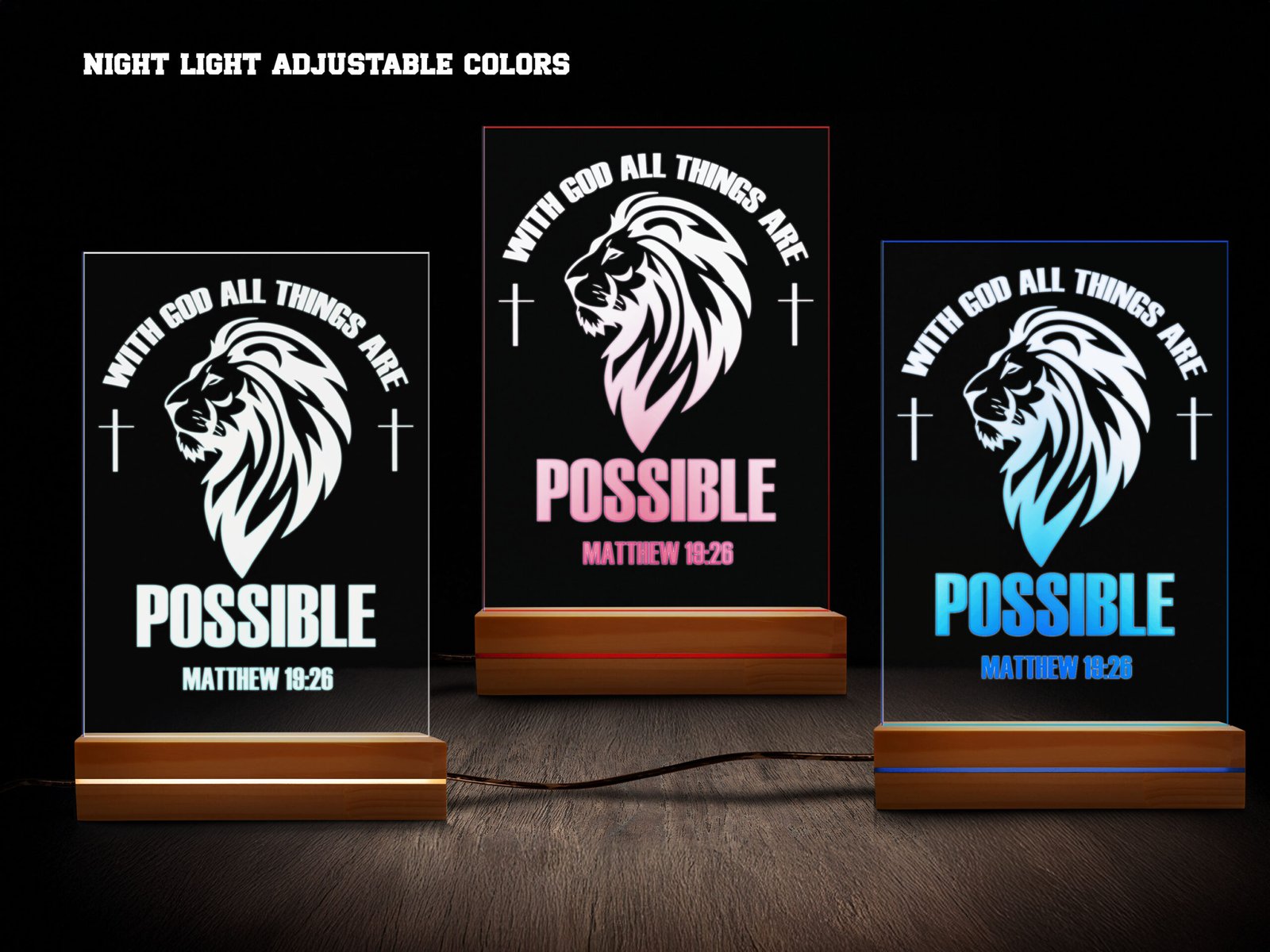 All Things Are Possible – Matthew 19:26 Personalized Biblical Night Light – 16 Color LED