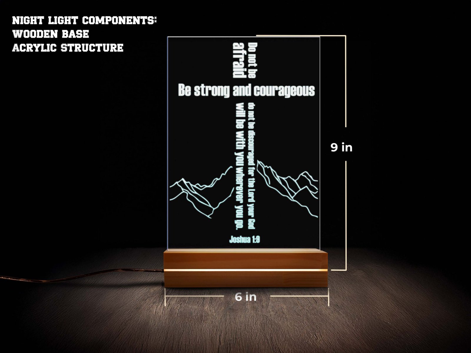 • Be Strong and Courageous – Joshua 1:9 Personalized Biblical Night Light – 16 Color LED