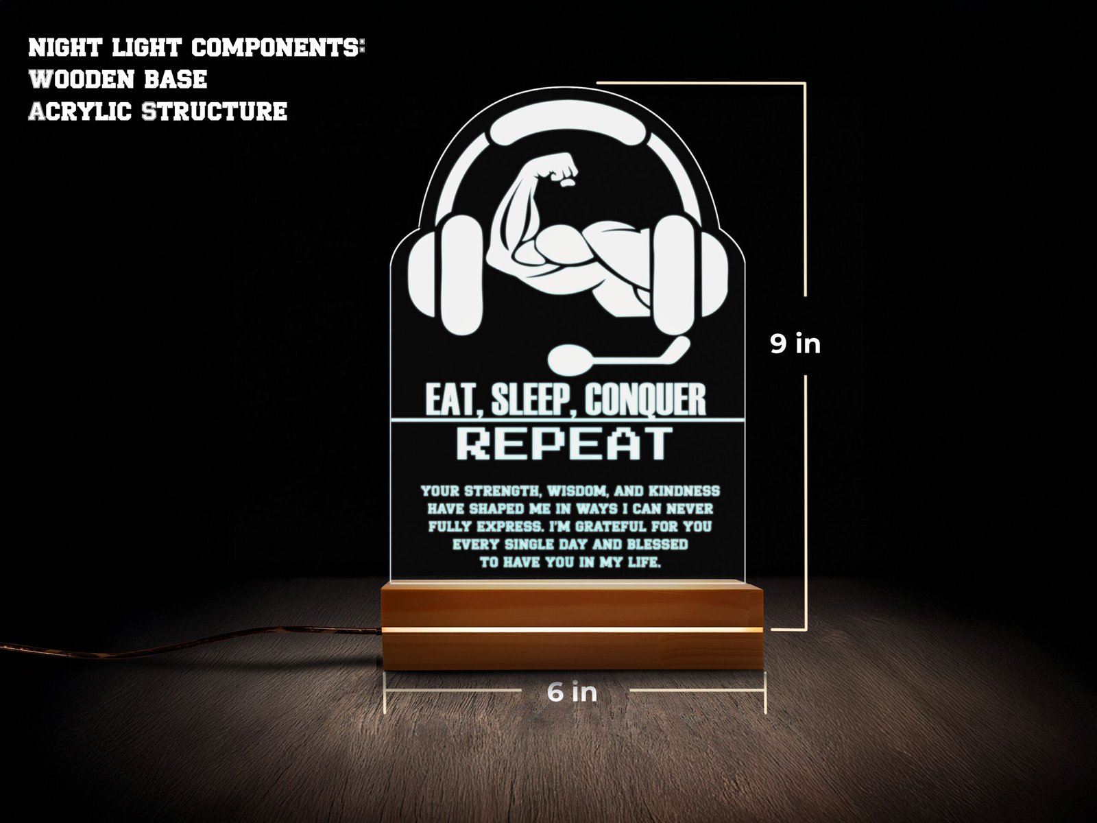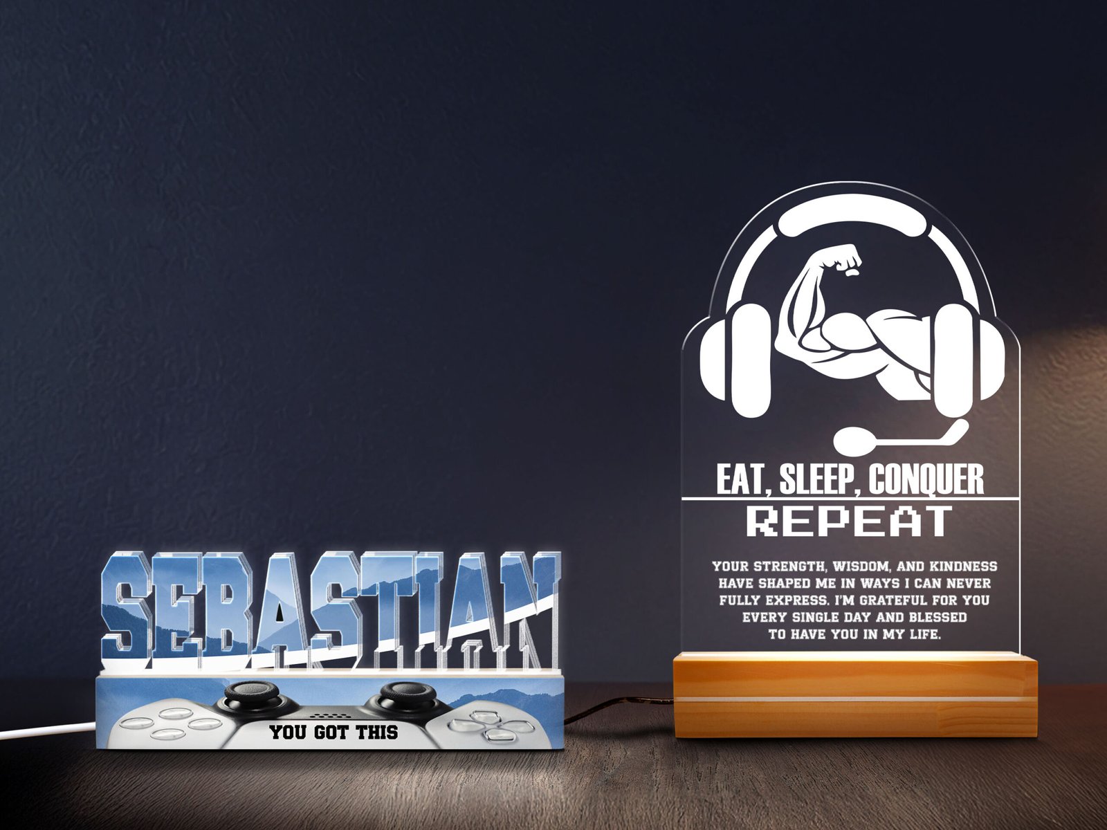 Eat, Sleep, Conquer, Repeat Personalized Gaming Night Light Set