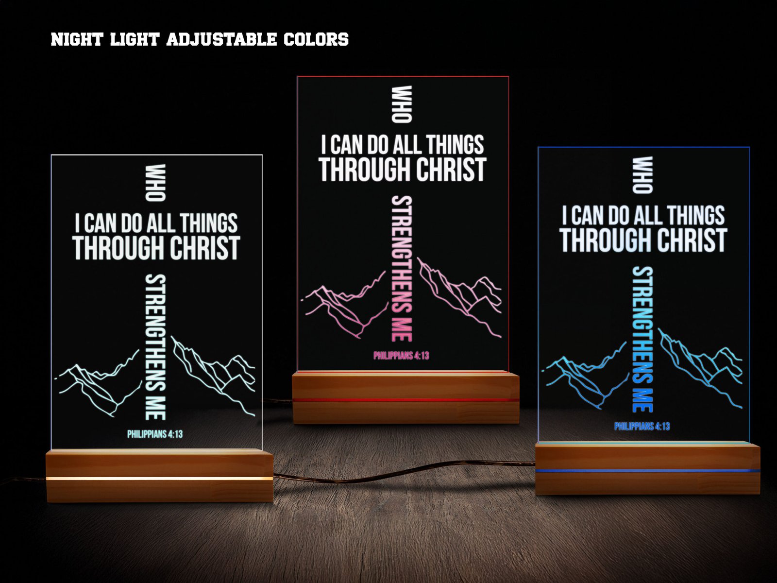 I Can Do All Things Through Christ – Philippians 4:13 Personalized Biblical Night Light – 16 Color LED