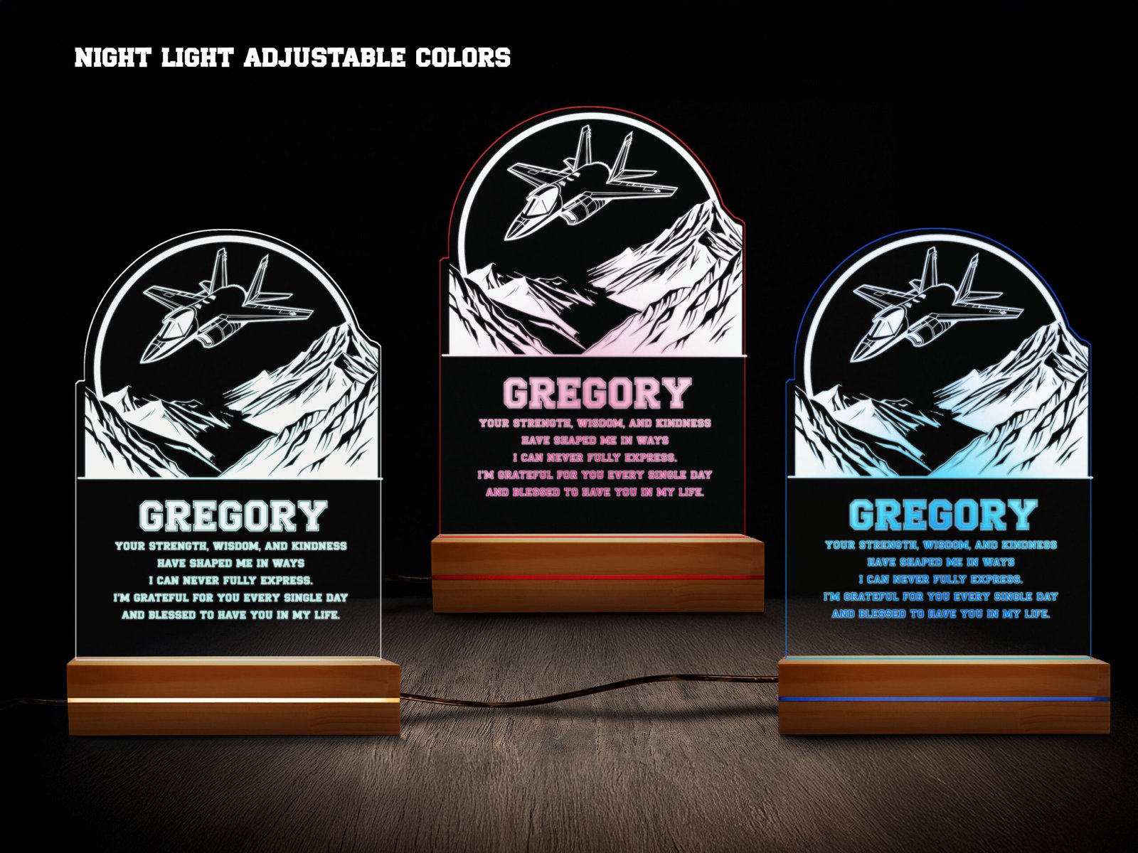 Jet Over Mountains Personalized Military Night Light – 16 Color LED