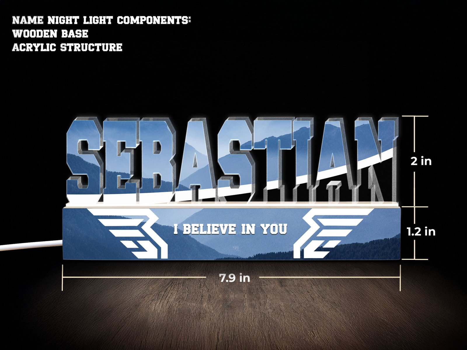 • Air force themed name night light with 7.9” wooden base: Personalize any room with our air force themed name night light, designed to create a whimsical and ambient space. This customizable light features non-toxic acrylic, a sturdy wooden base, and offers options for 7-color LED lighting: Yellow/White/Purple/Red/Blue/Light Blue/Green. 3 ft. USB cable with on/off button