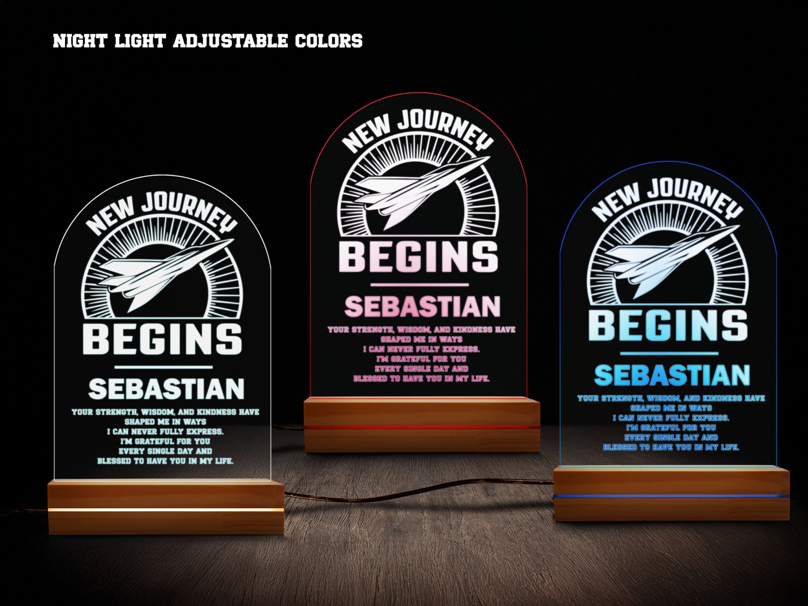 6”x9” Air force Night Light: Create a magical atmosphere with our 6”x9” personalized air force night light, ideal for bedrooms, living rooms, or workspaces. It features a pinewood block base with a 2K gloss coating, an acrylic sheet for displaying photos, and LED lights with 16 RGB colors and 4 flashing modes. 3 ft. USB cable with on/off button. This nightlight can be personalized with your name.