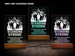 6”x9” Military Night Light: Create a magical atmosphere with our 6”x9” personalized military night light, ideal for bedrooms, living rooms, or workspaces. It features a pinewood block base with a 2K gloss coating, an acrylic sheet for displaying photos, and LED lights with 16 RGB colors and 4 flashing modes. 3 ft. USB cable with on/off button. This nightlight can be personalized with your name.