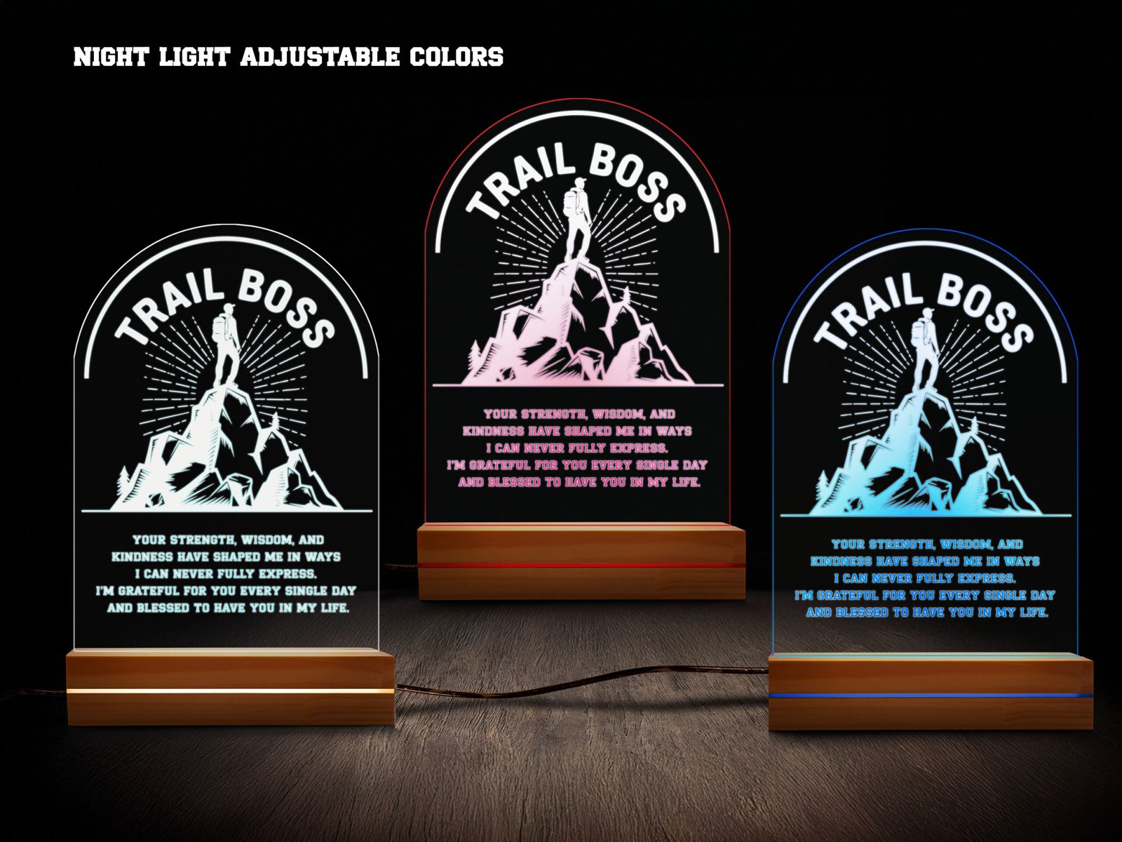 Trail Boss Personalized Hiking Night Light – 16 Color LED
