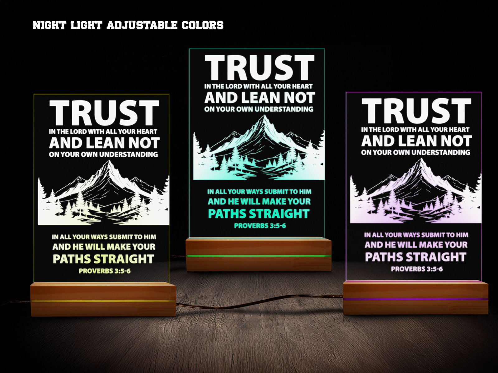 Trust in the Lord – Proverbs 3:5-6 Personalized Biblical Night Light – 16 Color LED